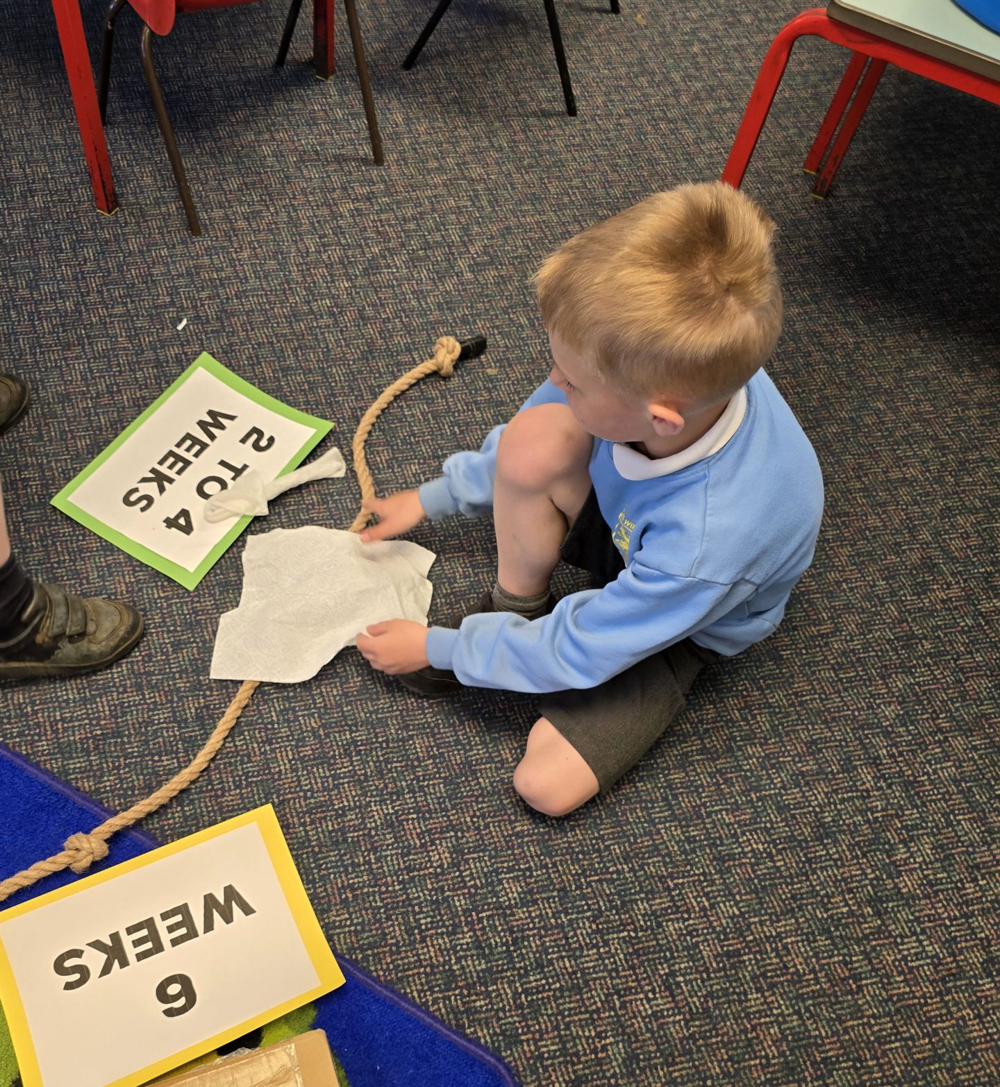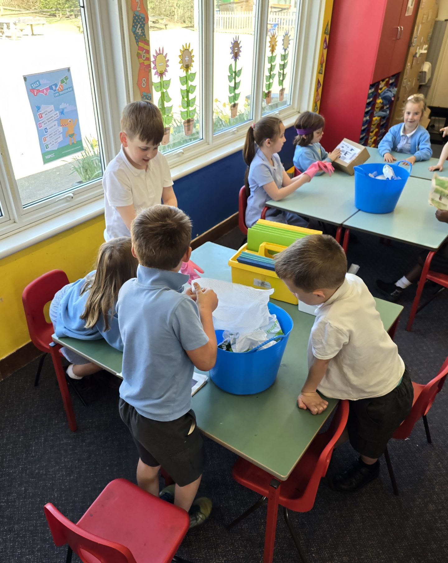 As part of our visit, children also took part in a timeline workshop. This hands-on activity teaches students how long everyday household waste items, like plastic bottles, aluminium cans, and wet wipes take to break down when not properly recycled or disposed of.