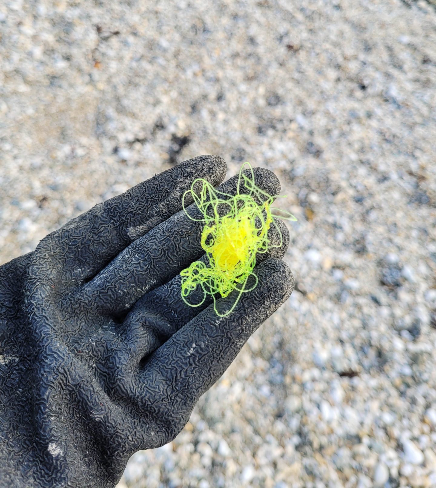 We had 22 wonderful volunteers arrive. Despite heavy rain the night before, the sun was shining. The students had to pick through masses of seaweed to find the litter tangled inside. Ghost gear, along with pieces of broken plastic and parts of eroded tin cans were all found amongst the seaweed.