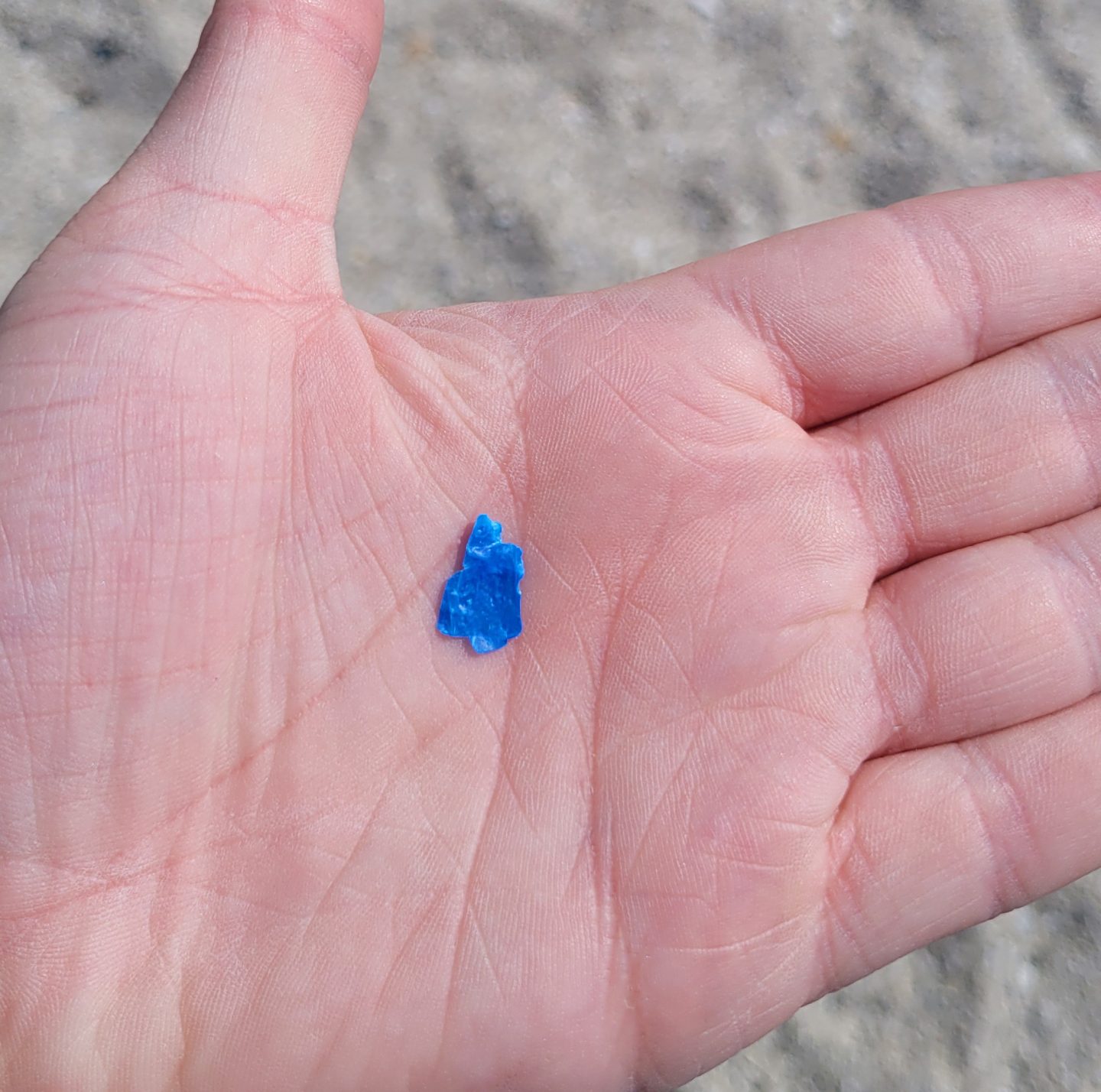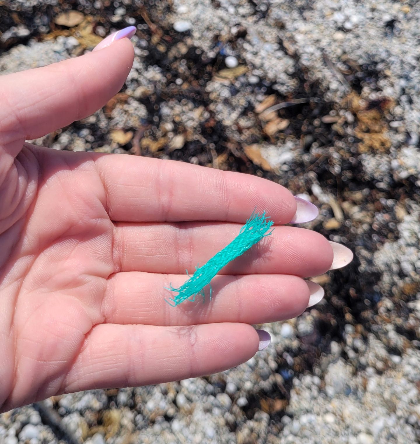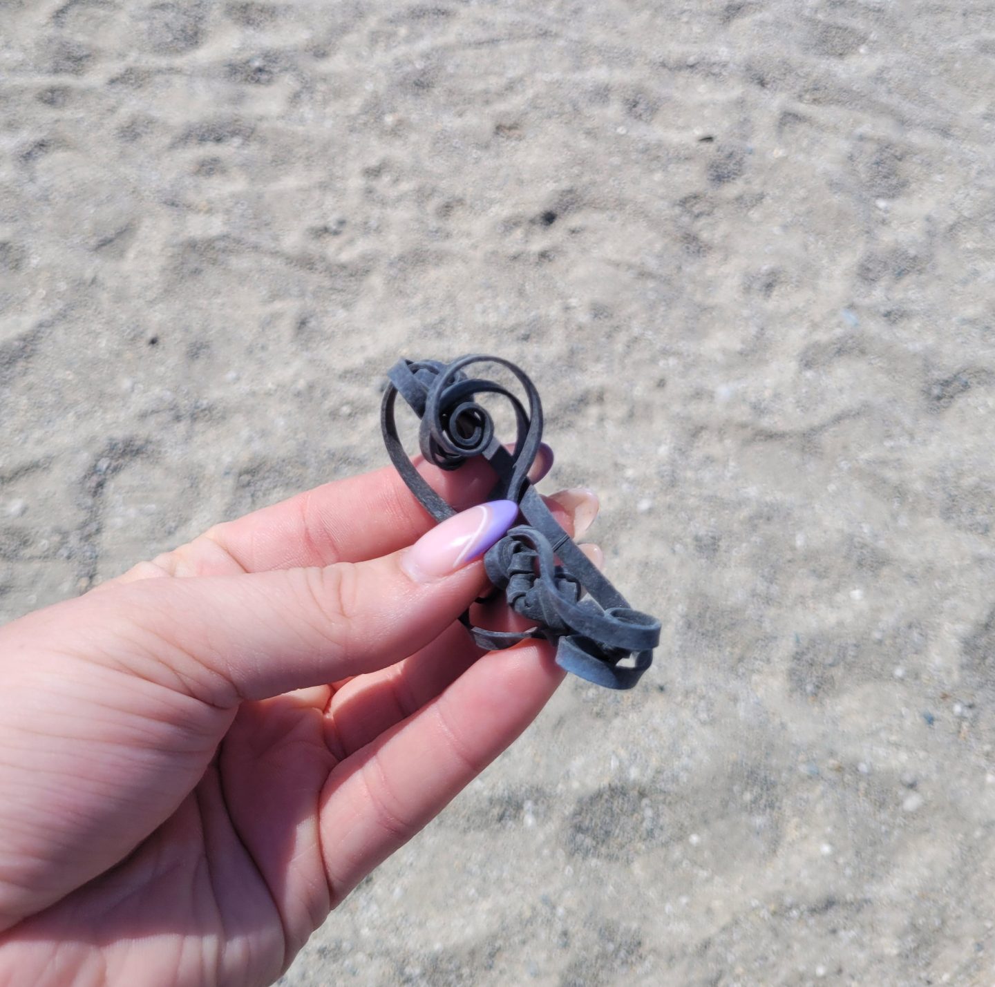 We found lots of light-weight plastic wrappers and microplastic pieces. We also found some more unusual items such as tangles of fishing nets, off cuts of wet suits, parts of surfboards, and lots of rubber bands.