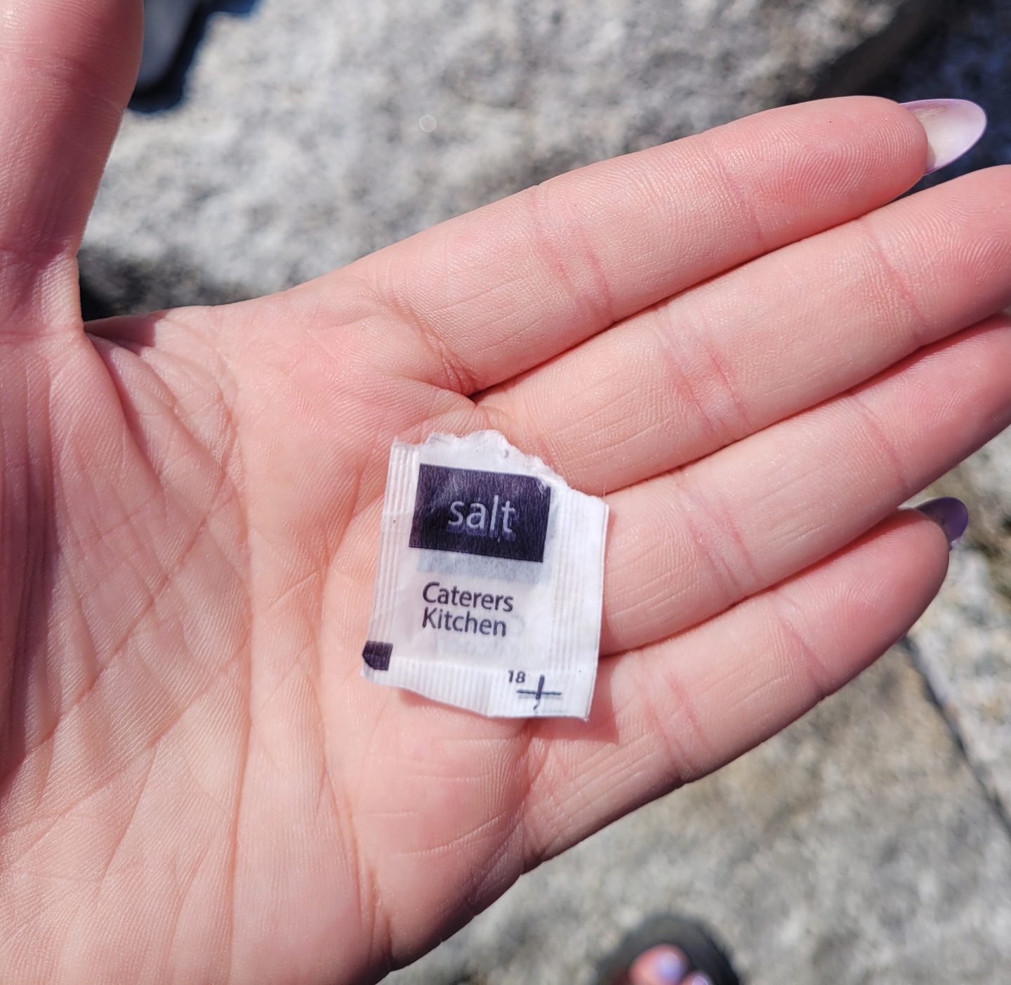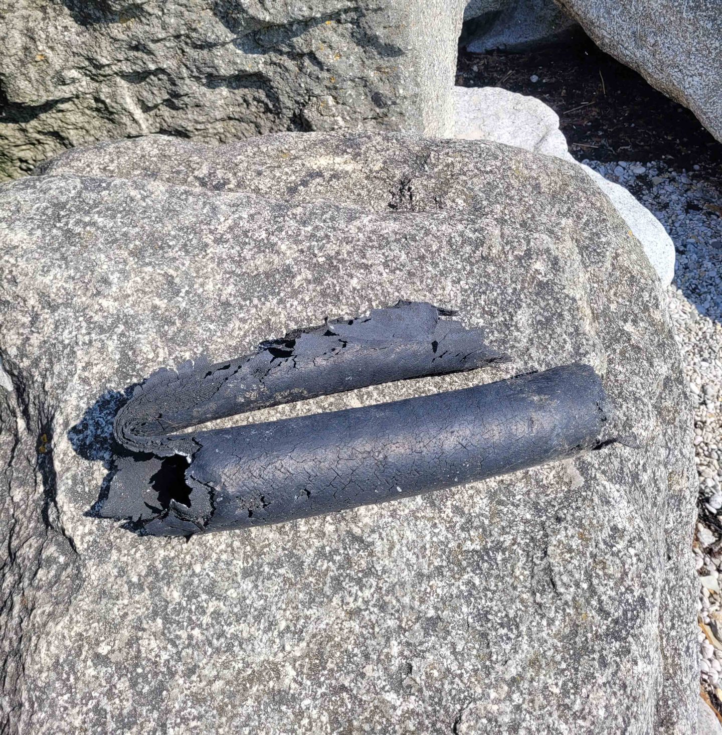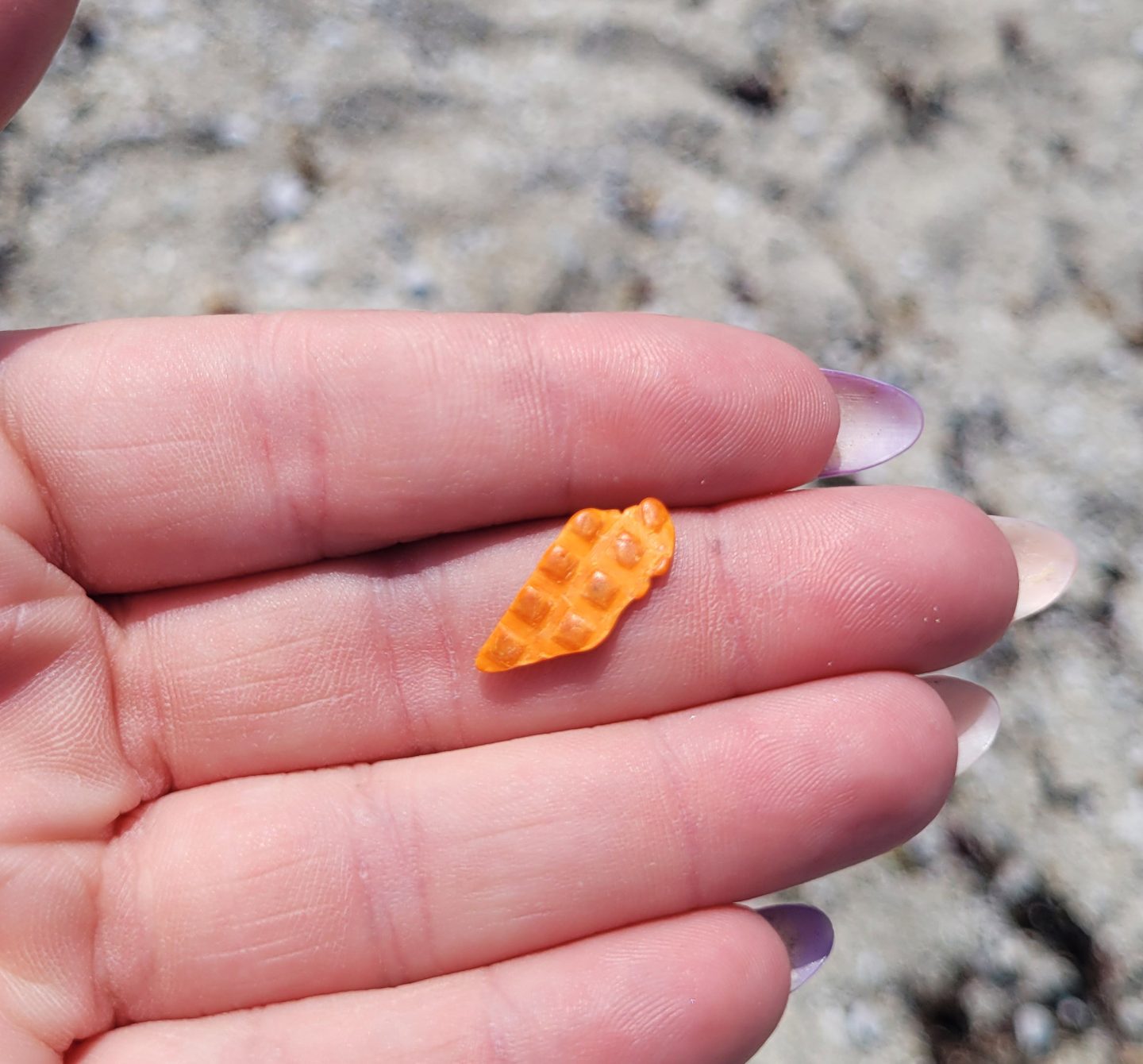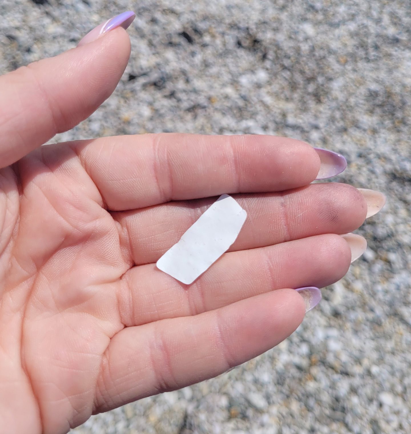 We found lots of light-weight plastic wrappers and microplastic pieces. We also found some more unusual items such as tangles of fishing nets, off cuts of wet suits, parts of surfboards, and lots of rubber bands.