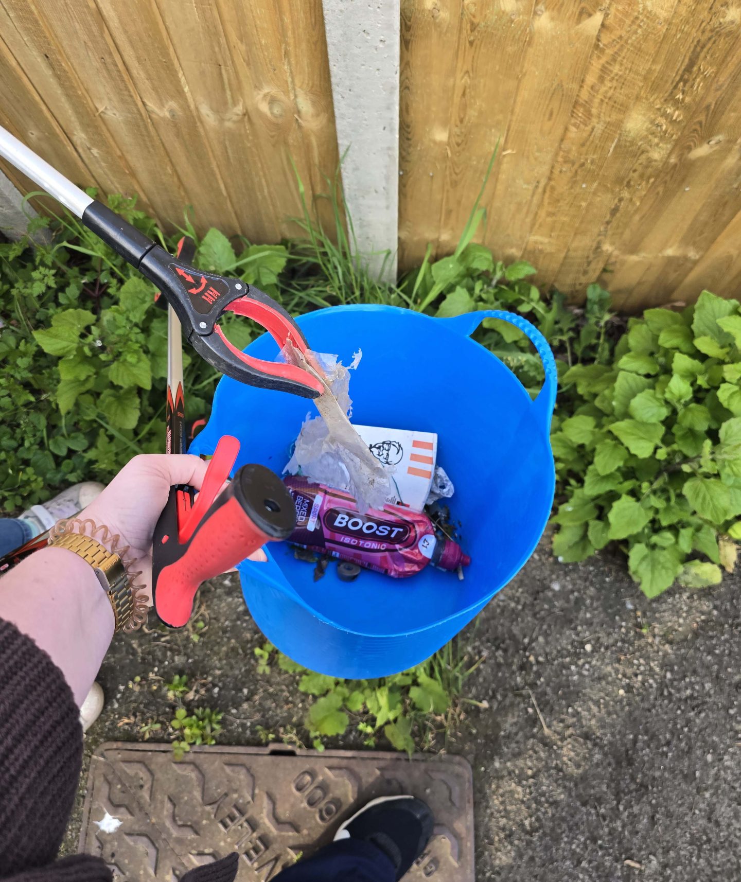 Armed with litter pickers, bags, and plenty of energy, the group carefully searched the area, collecting everything from food wrappers and plastic packaging to cans and other everyday items that had been left behind.