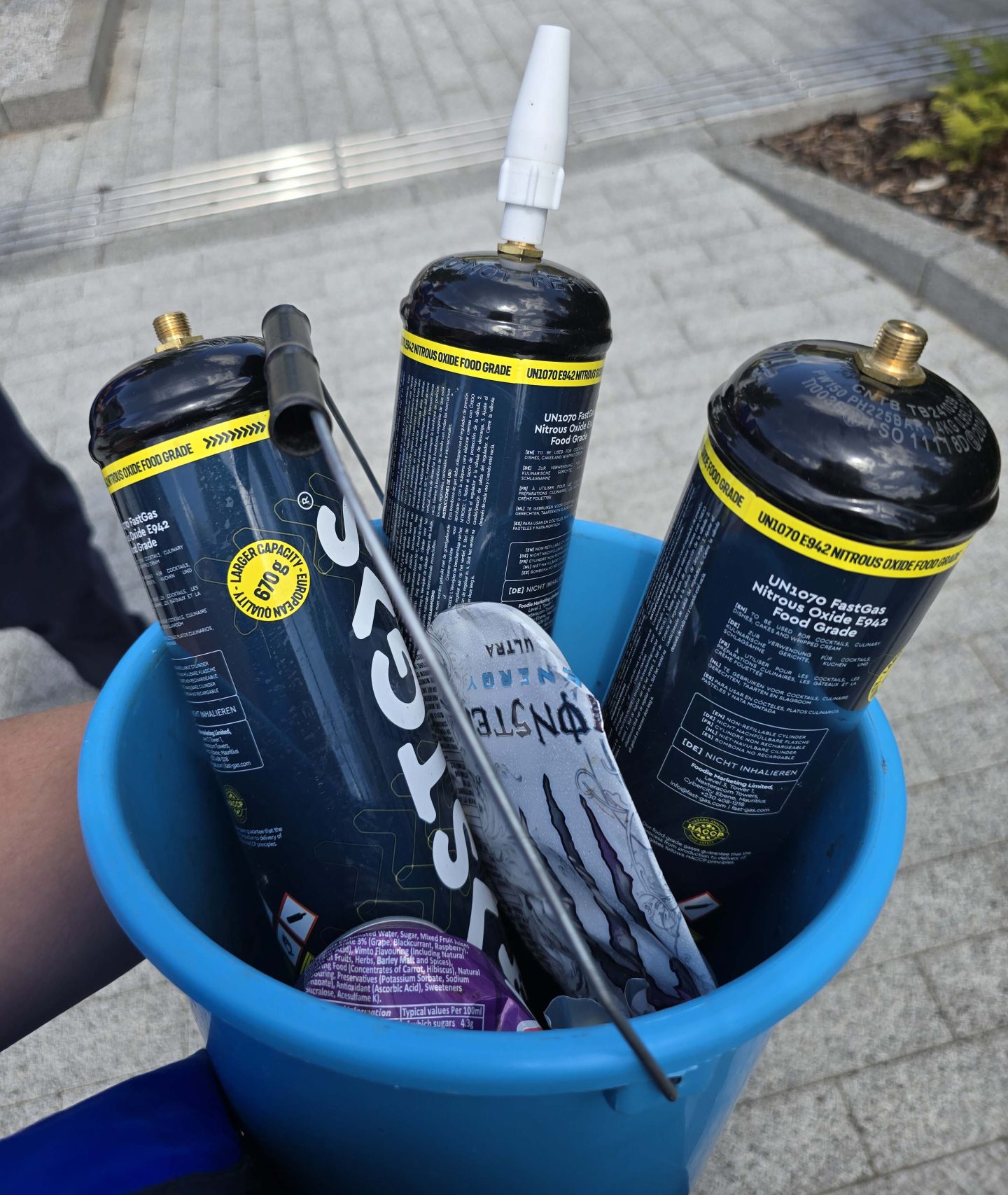 The volunteers found lots of the usual culprits such as plastic bottles, cans and wrappers, but there were also a couple more unique and interesting finds! These included a road closure sign which was buried underneath a bush (and clearly had been for a while), a number of gas cannisters and a deflated rugby ball.