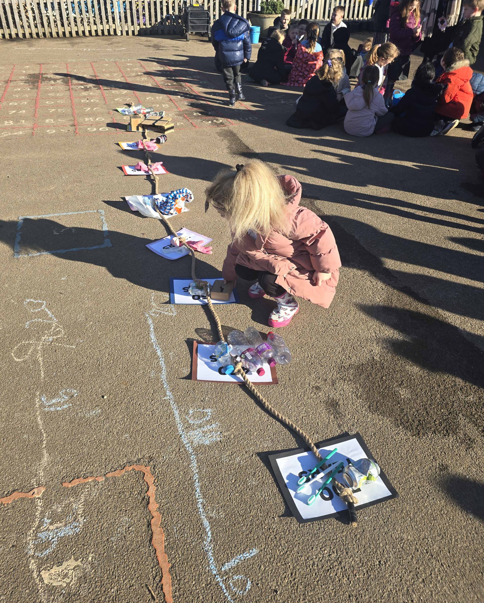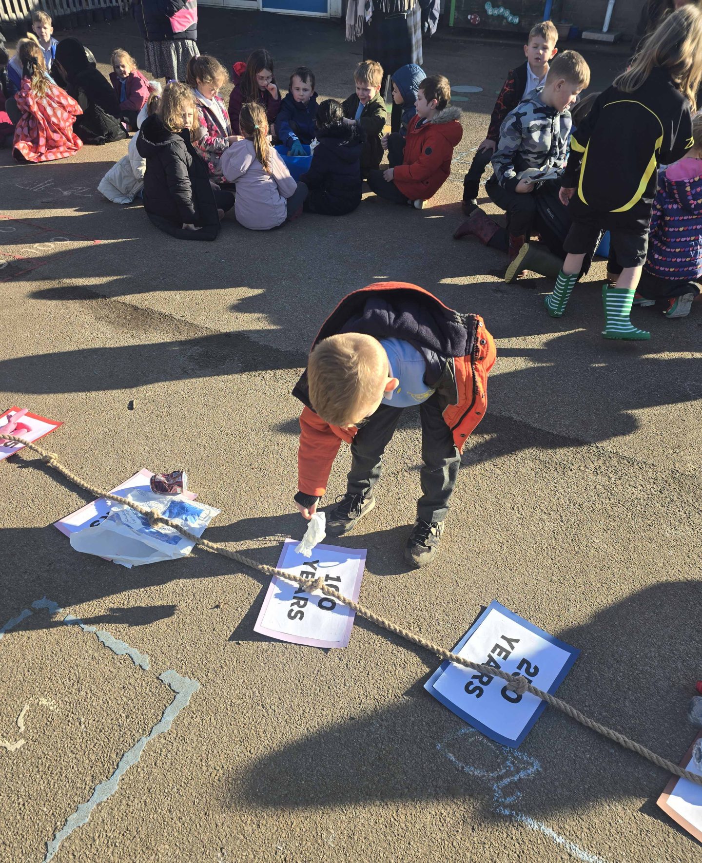 Following the assembly, the children took part in a decomposition timeline activity. This hands-on session encouraged them to think critically about everyday items and how long they take to break down in the environment. By placing items along a timeline, the children gain an important understanding of the long-lasting impact of litter and waste, sparking great discussions about reducing, reusing, and recycling.