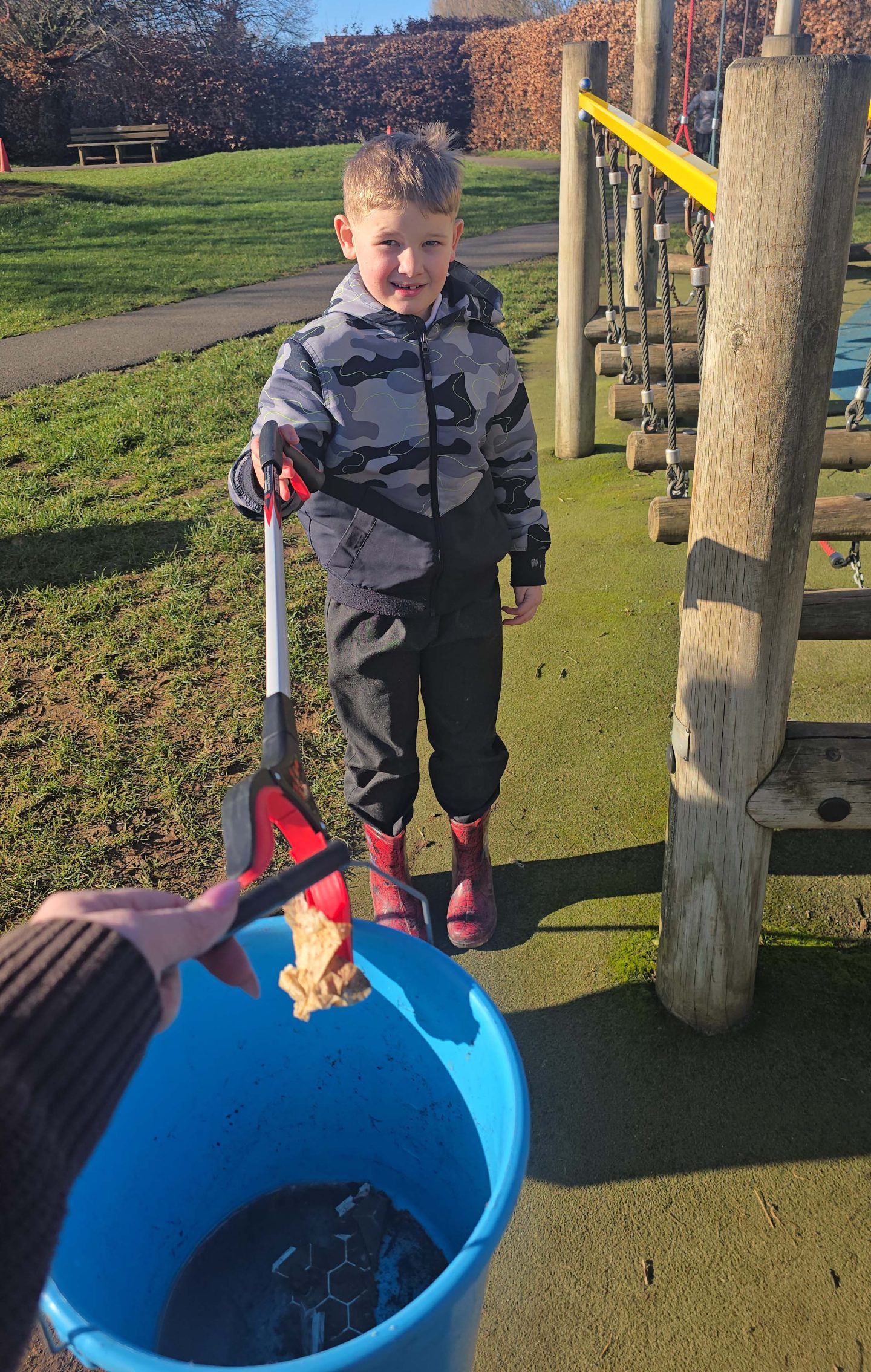 The highlight of the visit was a litter-picking around the school, where the children put their learning into action. Working together with energy and determination, they collected an impressive two black bags, full of litter! In total, the litter weighed 5.89 kilograms, which is a fantastic achievement and a clear demonstration of how collective action, even on a small scale, can have a significant impact.