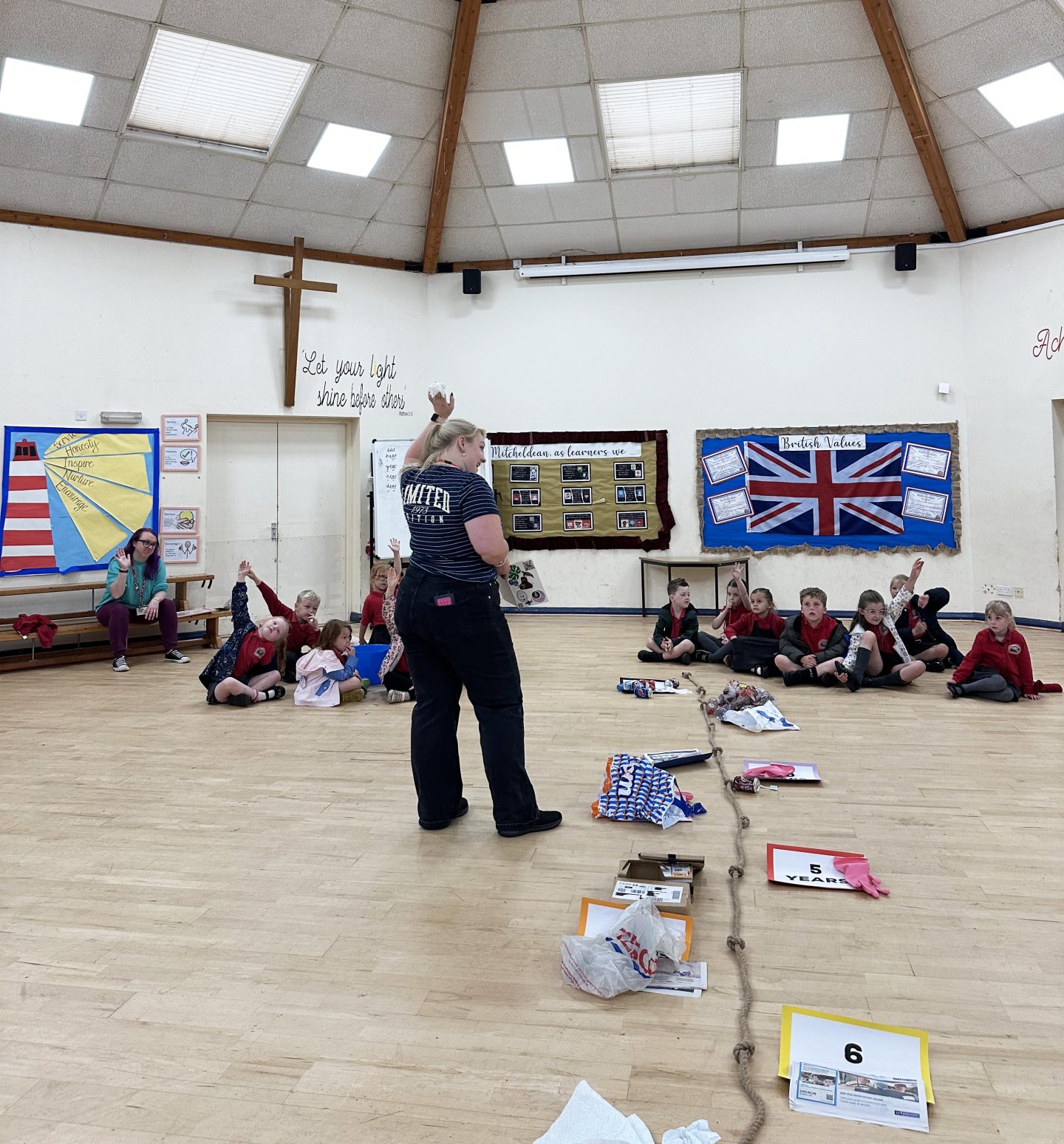 We then spent the day with each individual class, totaling 205 students, who took part in our decomposition timeline activity. This interactive task encourages the children to work in teams to decide how long everyday household items, like plastic bottles, toothbrushes and drink cans take to break down in the natural environment.