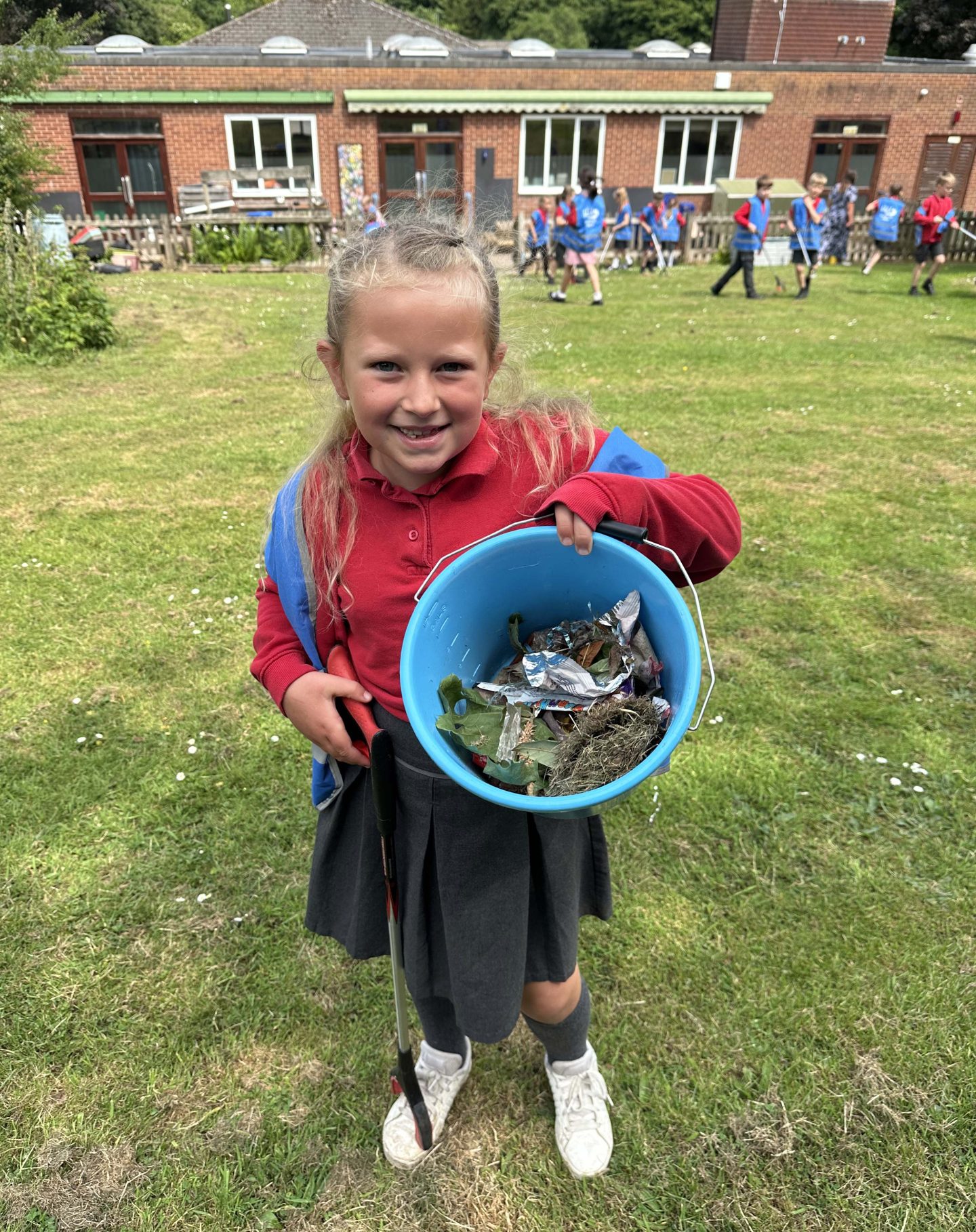 After this, we took each class armed with litter pickers, buckets and hi vis vests, outside to clear up any rubbish. The younger children tackled the school grounds including field and playground, whilst the older classes ventured out into the nearby area including the Mitcheldean playing fields. We were very impressed by how clean the area was, and some of the students were very keen to tell us about the village litter pickers, who go out almost daily to keep Mitcheldean clean! Despite this, the children still managed to find 6.21 kilograms of litter hiding in bushes, under bins and buried in the grass, showing how no effort is too little to make an impact!
