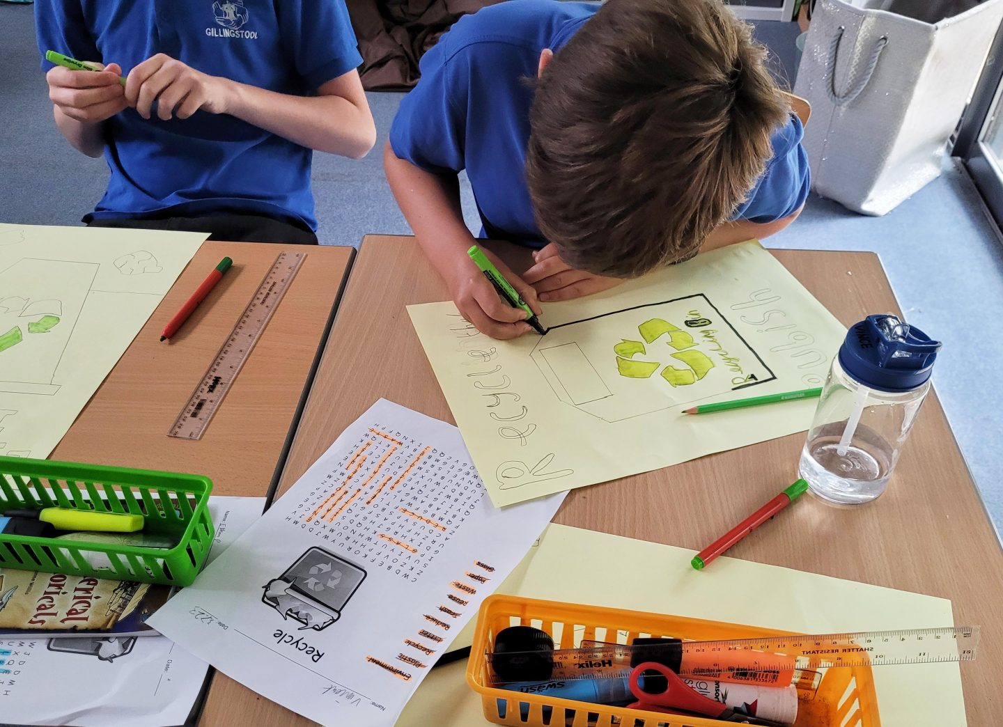 Gillingstool Primary is implementing several new ways to reduce single-use plastic. A new recycling bin has been placed in the lunch hall, a soft plastic collection point has been created, and older students are becoming litter and recycling champions to encourage younger children to recycle more.