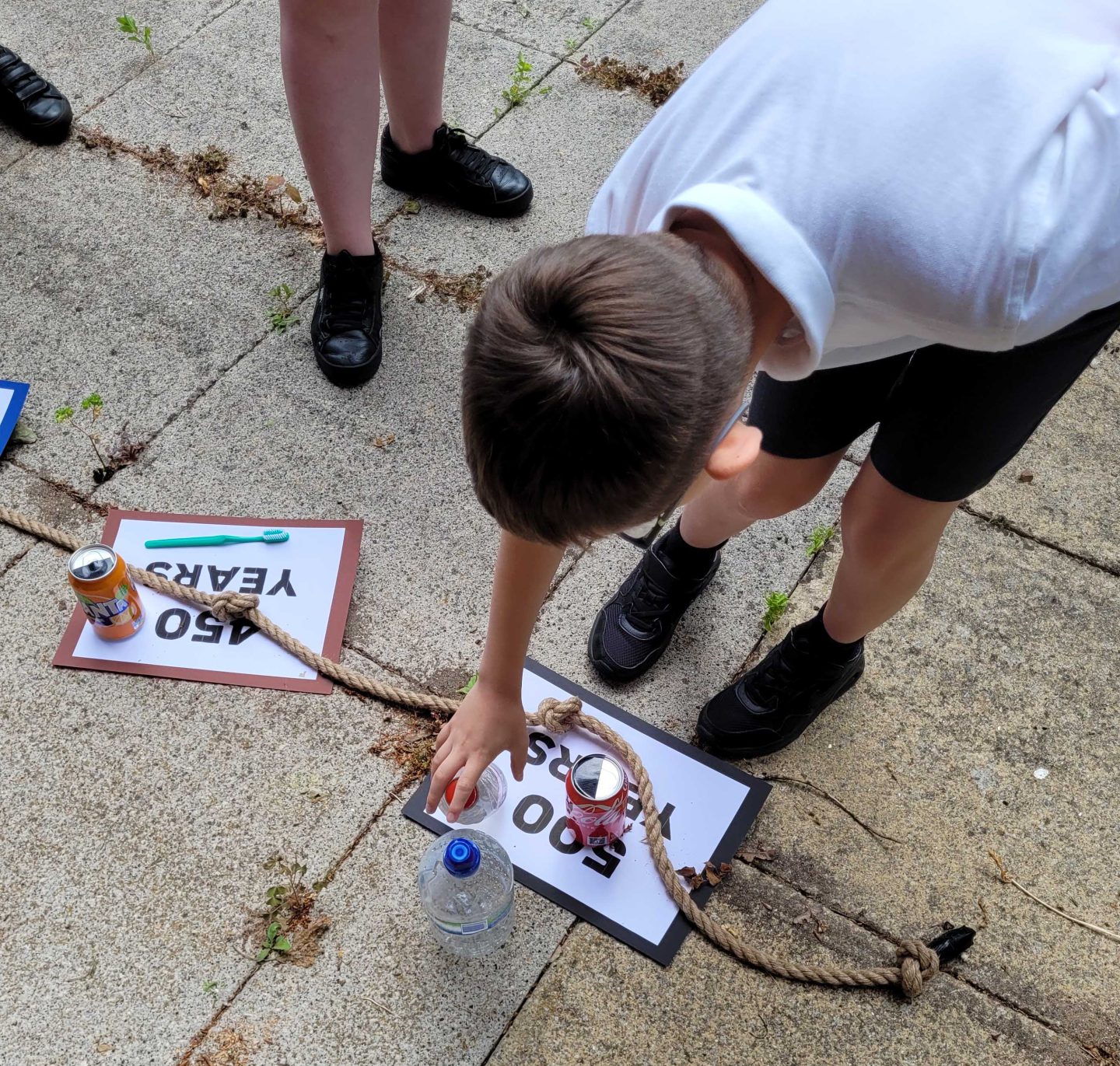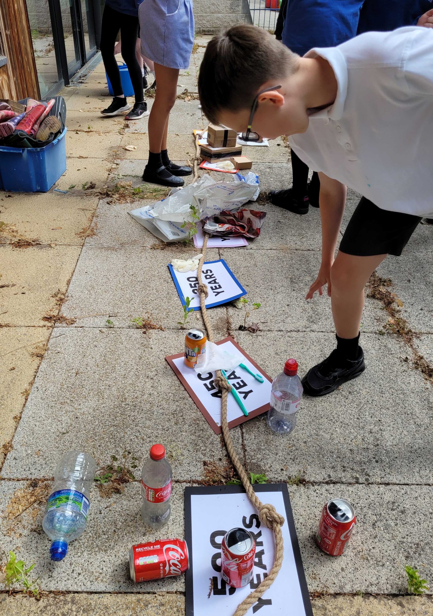 Working in groups they placed their items on the time markers along the timeline. Almost all of the children were shocked to learn that the items took far longer than they expected to break down. The plastic toothbrush and drinks cans were especially surprising to them!