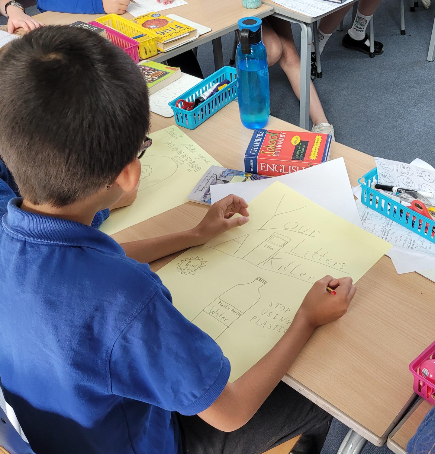 These posters will be displayed across the school to encourage other students to use less plastic, and recycle more.