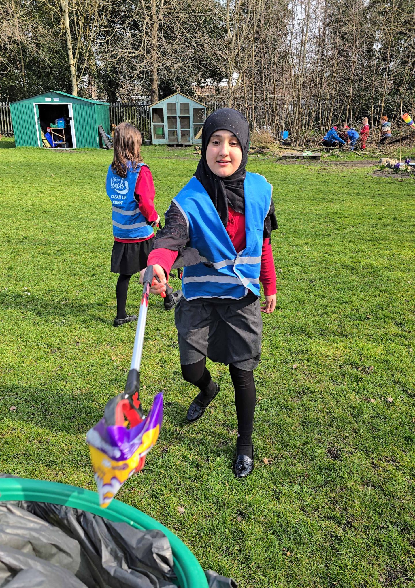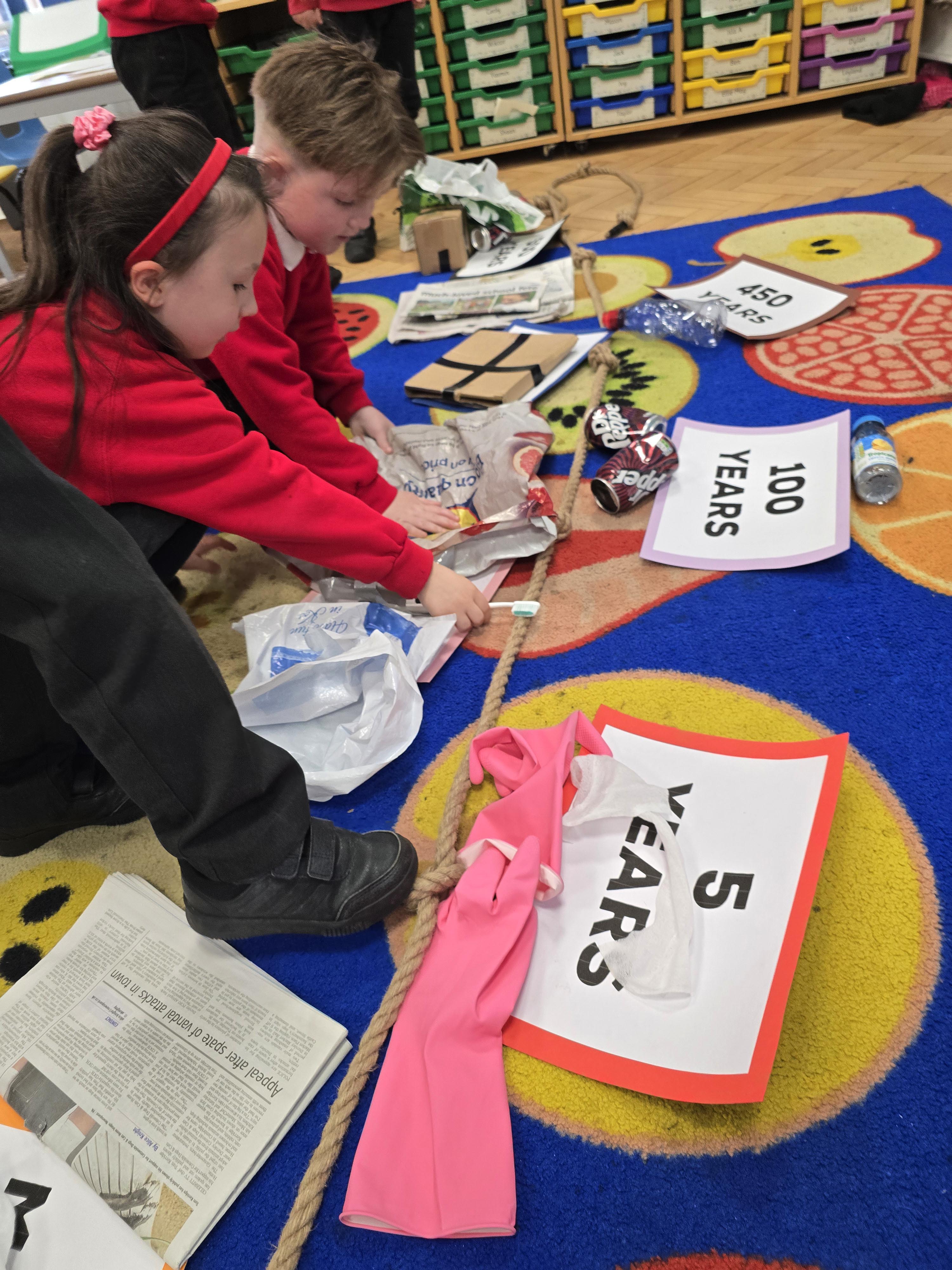 In the afternoon, we took the learning outside for a litter pick on the school field. Armed with grabbers and gloves, the students did a brilliant job collecting rubbish and taking pride in making their school grounds cleaner. One of the standout finds? A crisp packet from 2004, a real eye-opener that showed just how long litter can last in the environment.