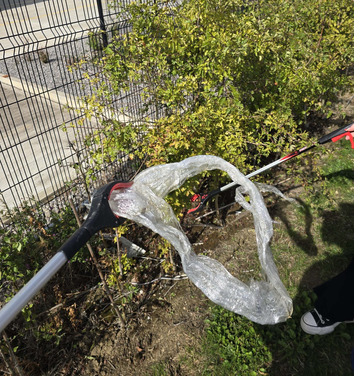 Armed with litter pickers, buckets and big smiles, everybody dived right in, making a real difference in such a short space of time. We collected a lot of plastic and packing material, which looks like it had been blown into the bushes through the wind.