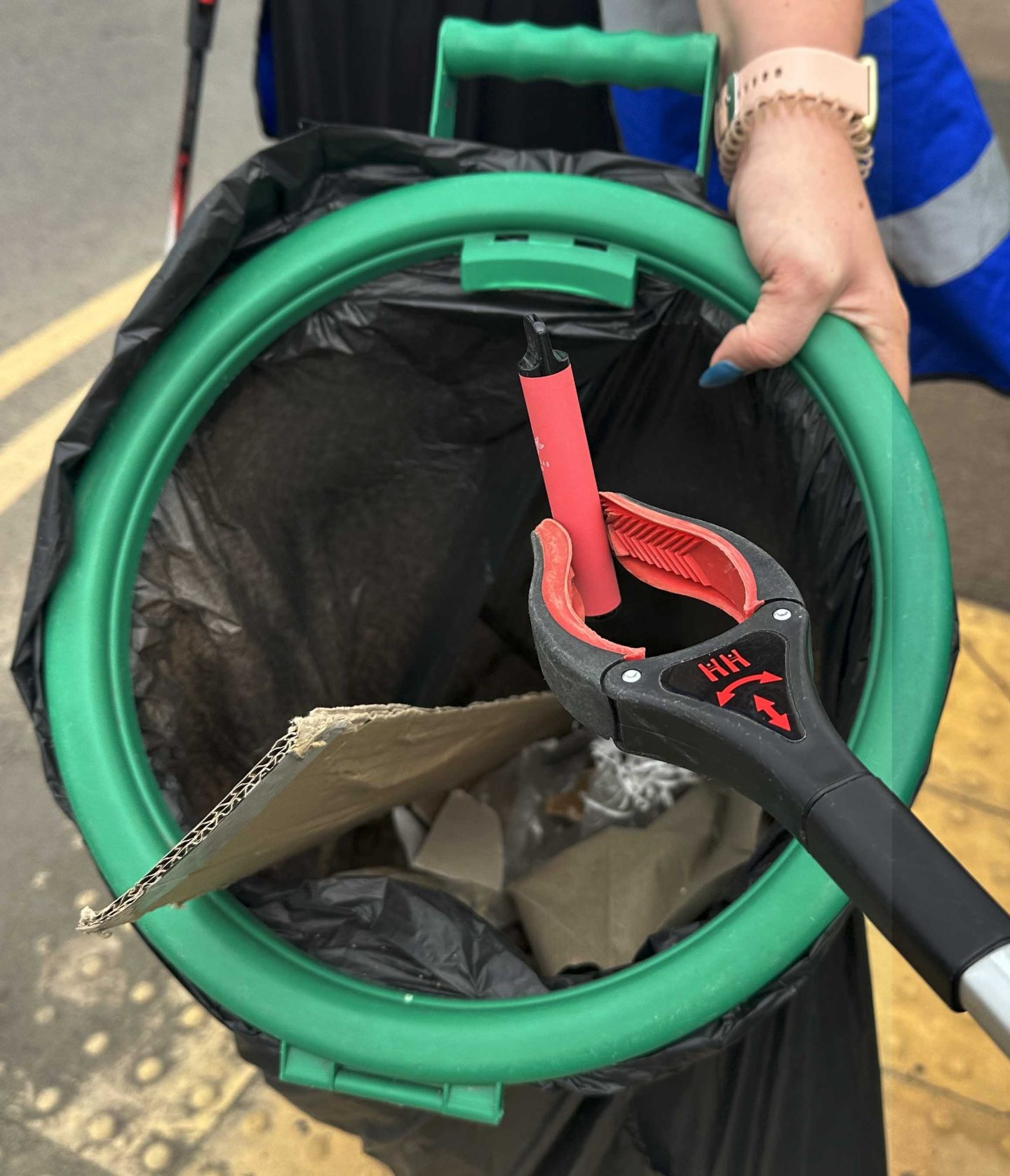 Armed with litter pickers, buckets and big smiles, everybody dived right in, making a real difference in such a short space of time. We collected a lot of cigarettes, vapes, plastic wrappers, cans and bottles, highlighting the need to opt for reusable alternatives!