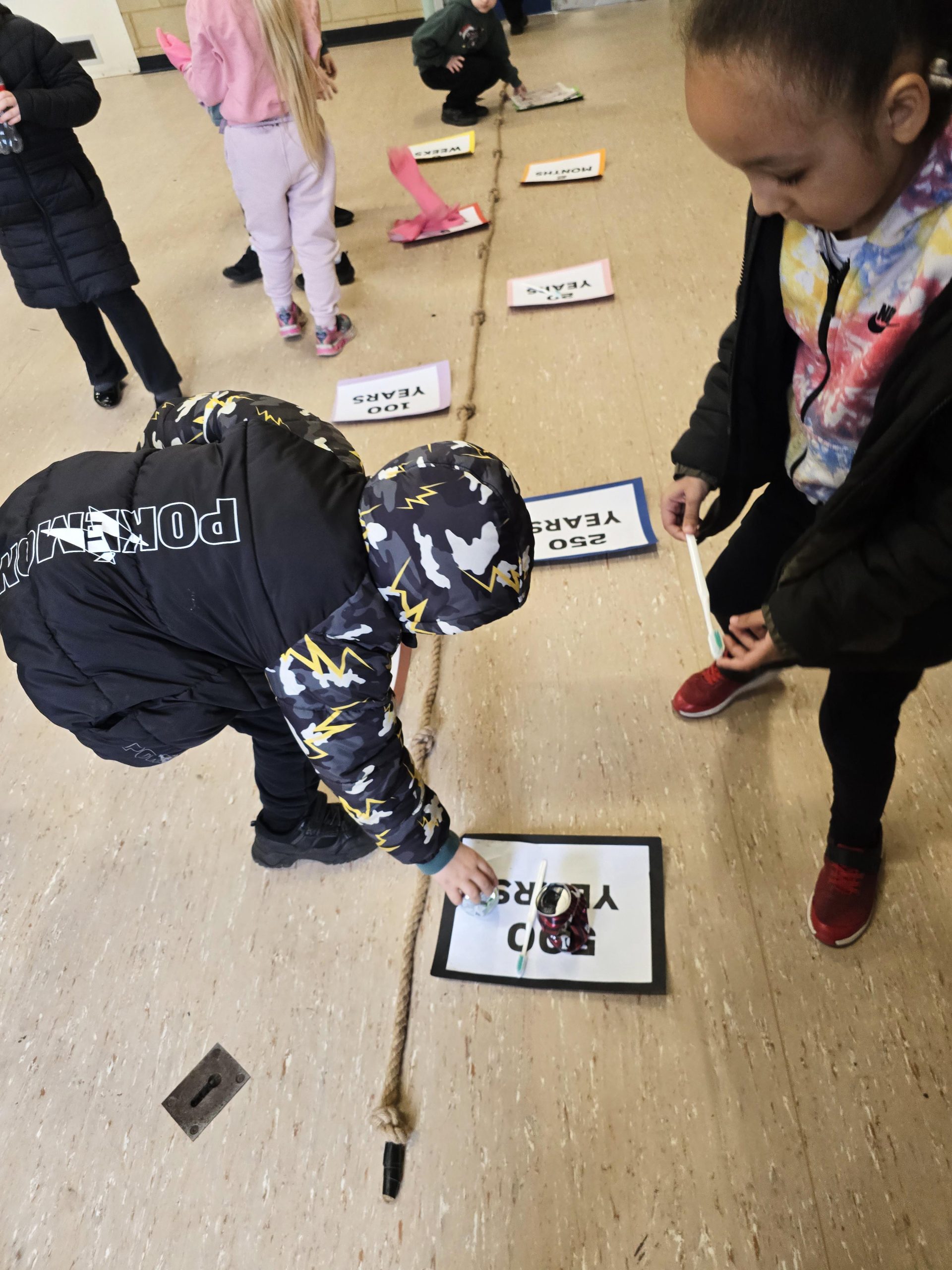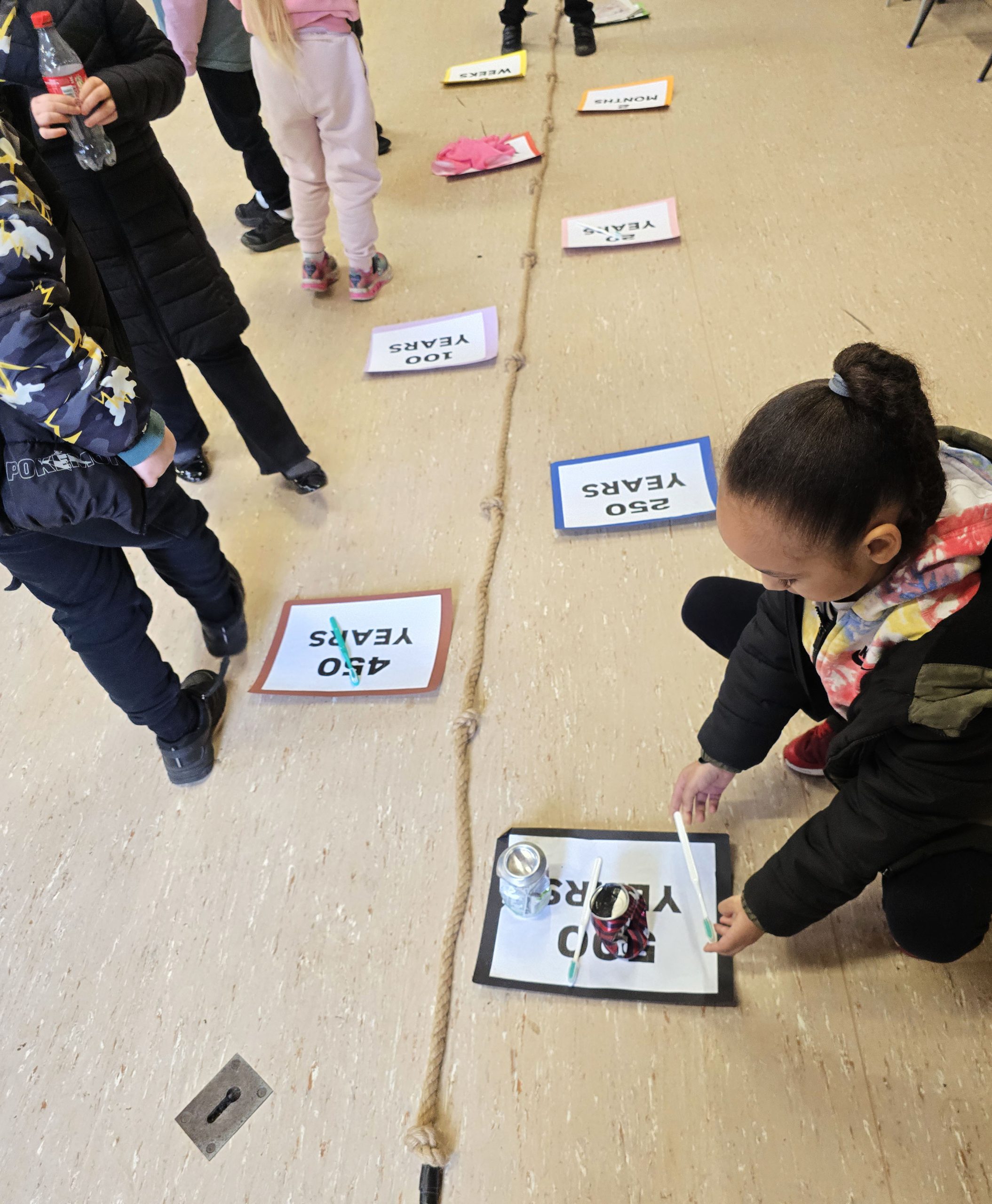 After our whole school assembly, each class came and worked on our decomposition timeline. In teams they decided how long every day household items take to break down when not properly recycled. Many of the pupils were surprised that hard plastic items like a toothbrush take longer than metal drinks cans to degrade.