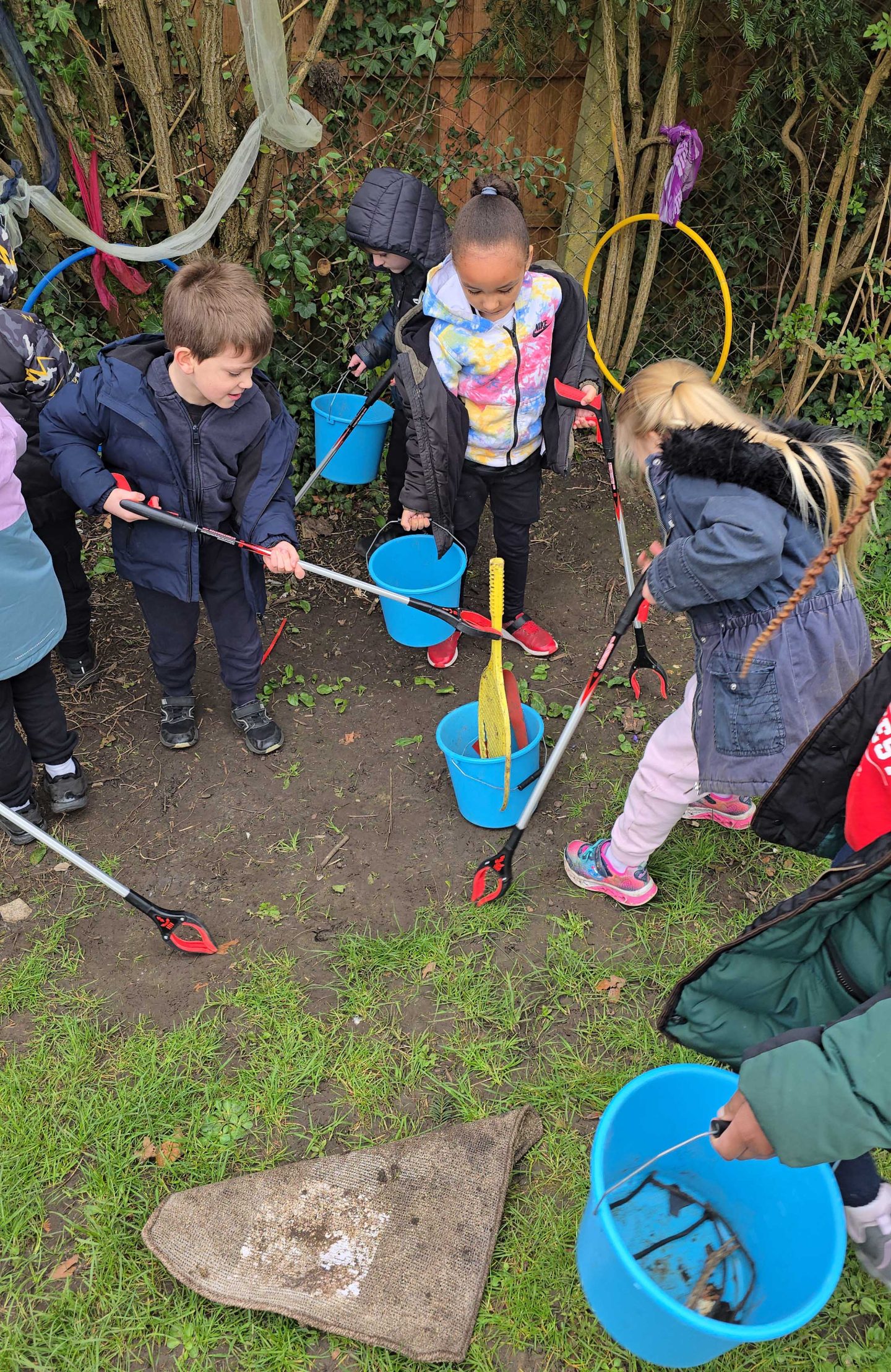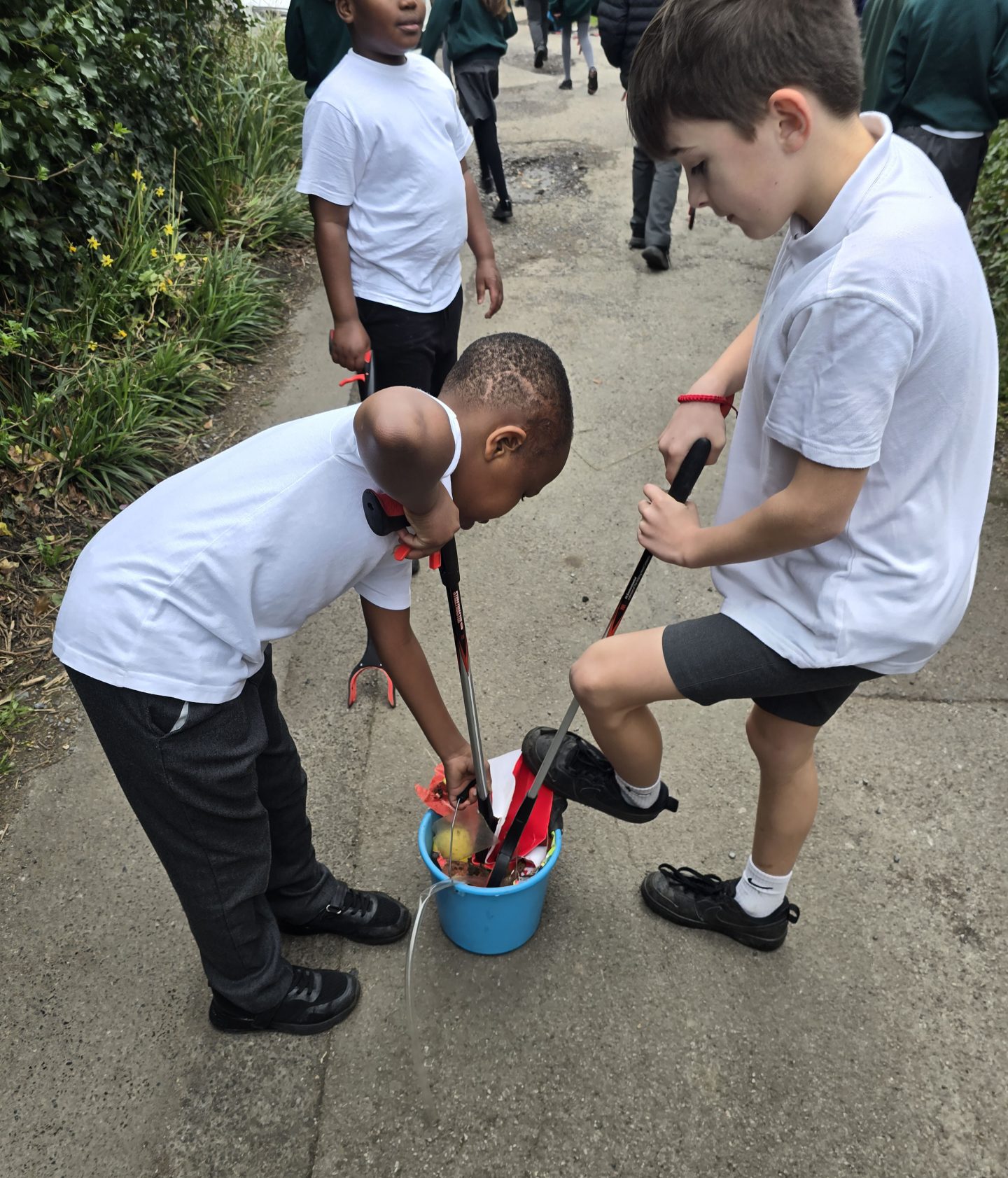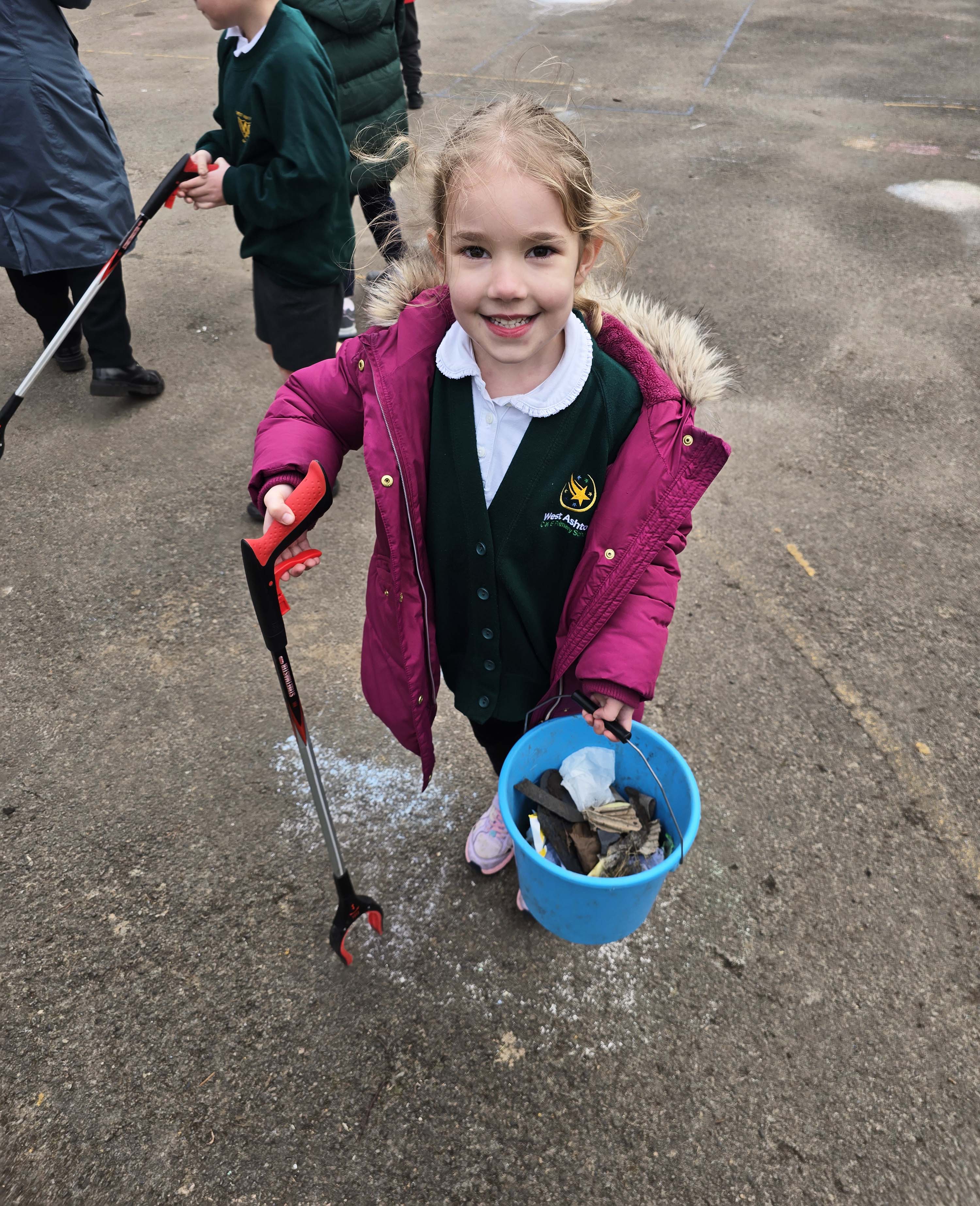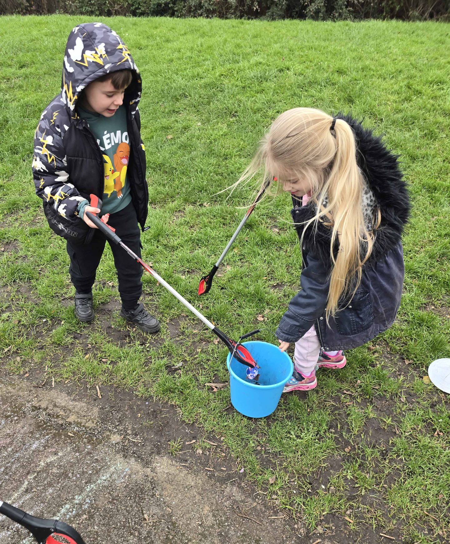 After working through our workshop each class then went out into different parts of the school grounds to litter pick. We loved seeing the team work in action as the pupils worked to clean up their school and the surrounding environment. Their enthusiasm was infectious and they filled bucket after bucket of plastic rubbish.