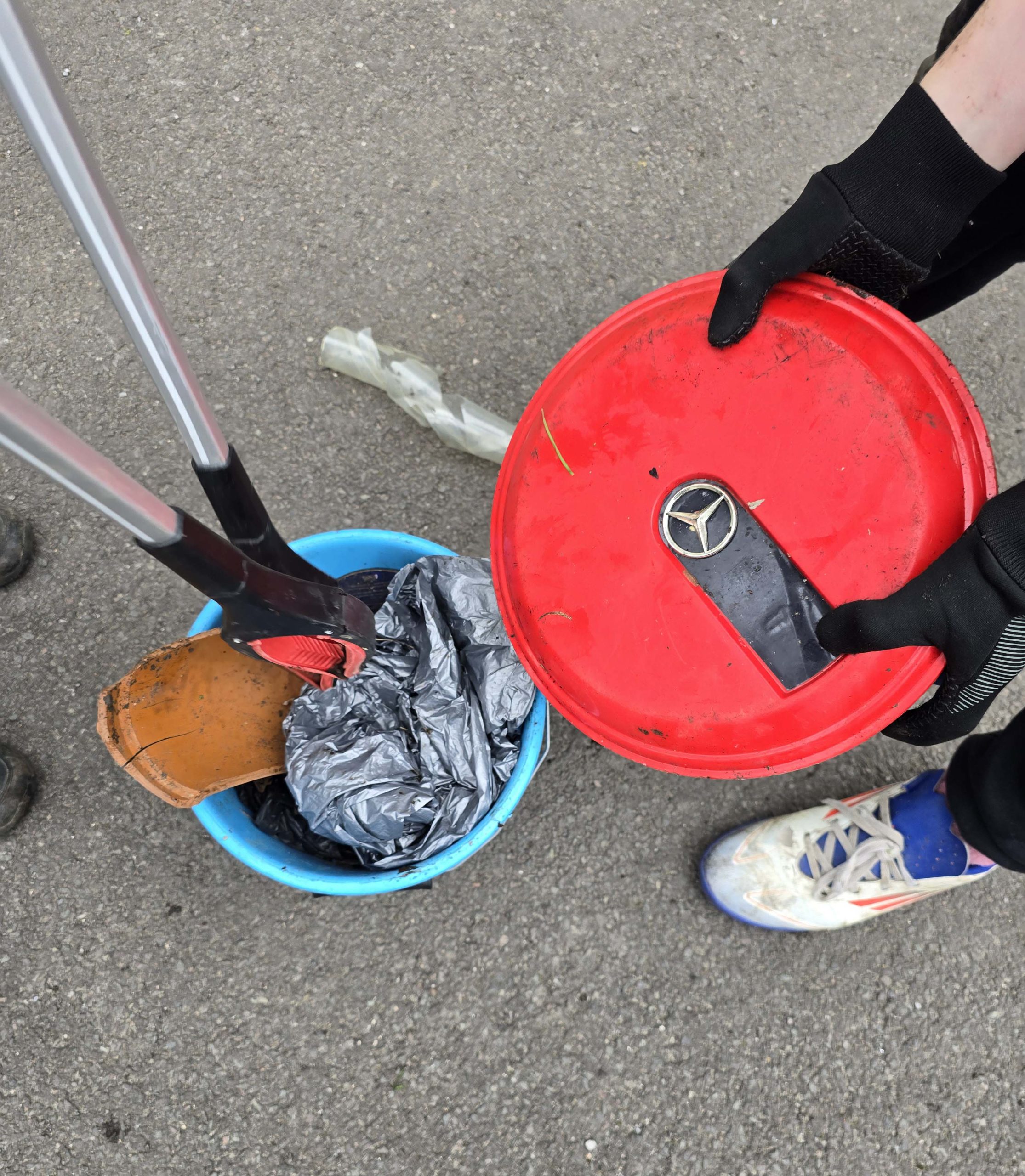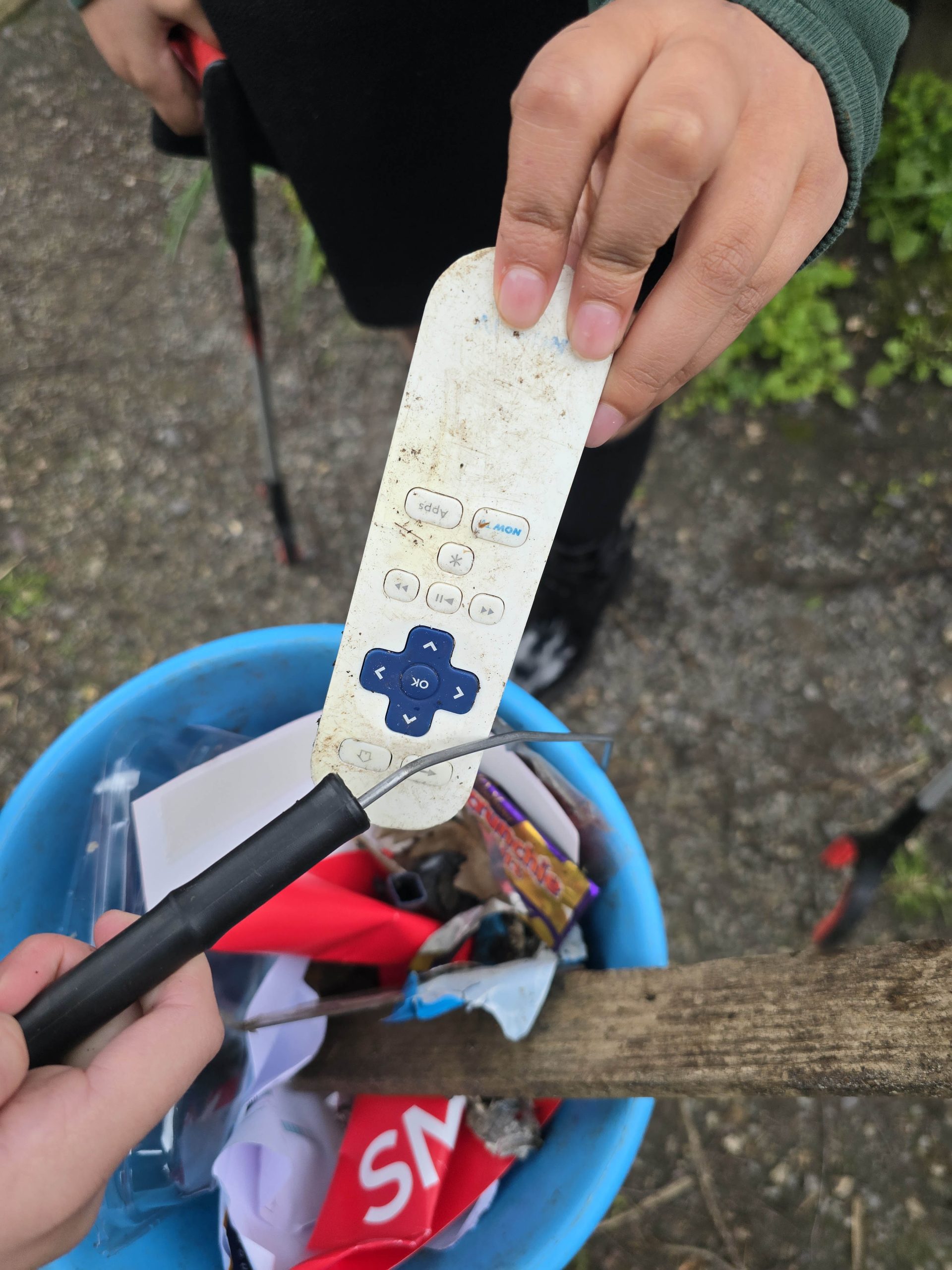 Whilst we mostly found the usual suspects of crisp packets, broken toys, and wrappers, we also found some unusual items. We found a camp shower, a TV remote, car parts, pipes, and a collection of CDs dated to 2005! At the end of the day the 98 pupils collected up 8.98 kilos of rubbish, making a great difference to their local environment.